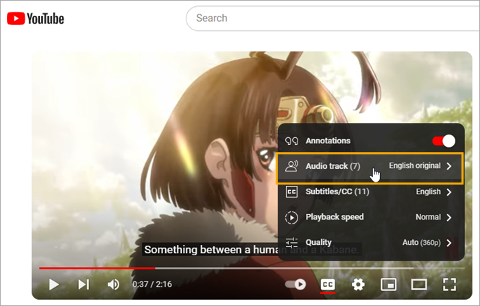 2. Go to the YouTube official website in the browser and open the video with multiple audio tracks. You can see that there are many audio tracks in different languages. Then copy the URL address link of the video.